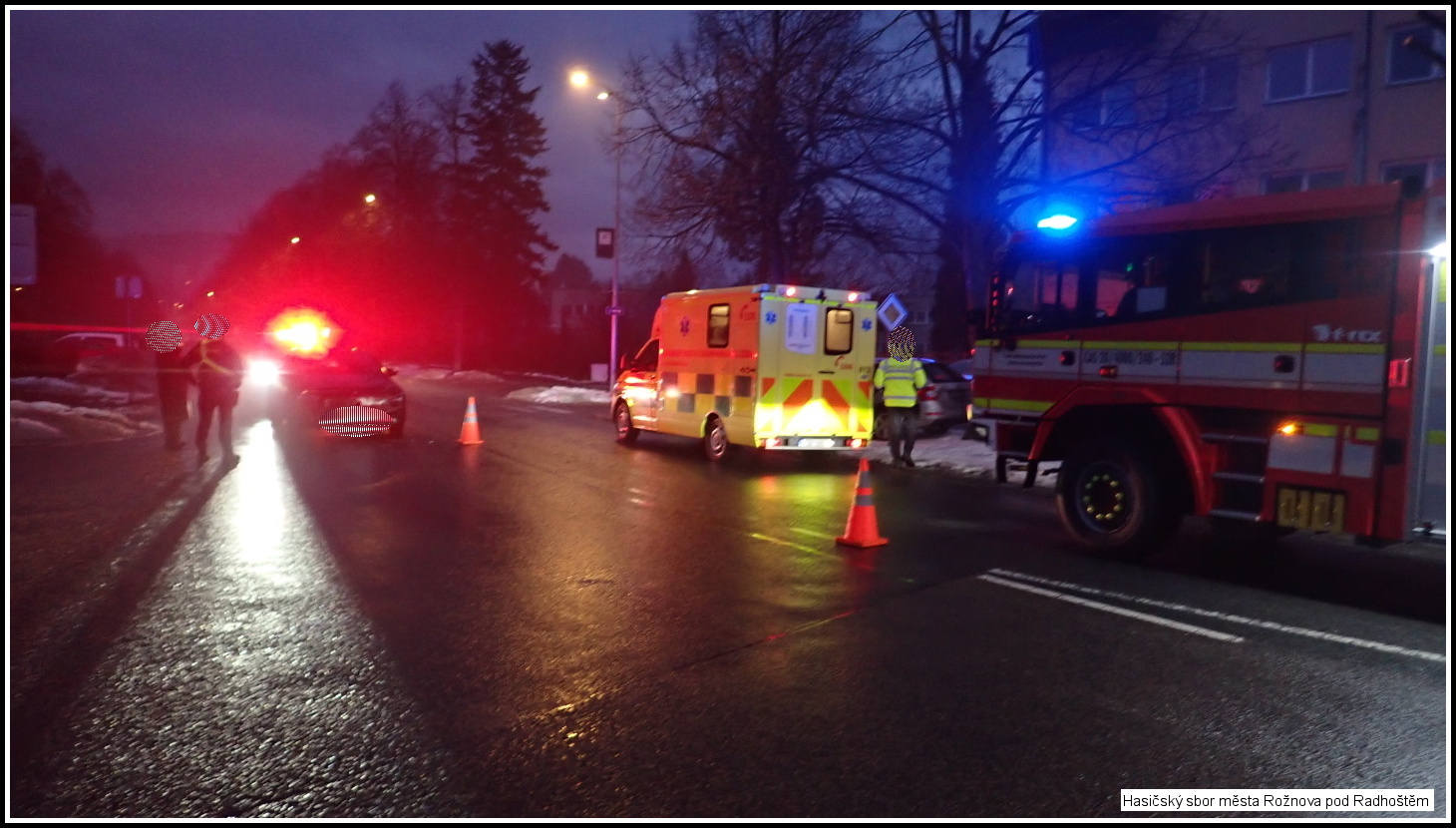 V 06:38 hod. byli vysláni profesionální hasiči města Rožnova pod Radhoštěm s technikou CAS20 Tatra Force k dopravní nehodě v Rožnově pod Radhoštěm, ul. 5.května. Současně byla na místo události vyslána posádka ZZS a Policie ČR. V době příjezdu jednotky na místo události, byla zraněná osoba v péči posádky ZZS. Jednotka provedla protipožární...