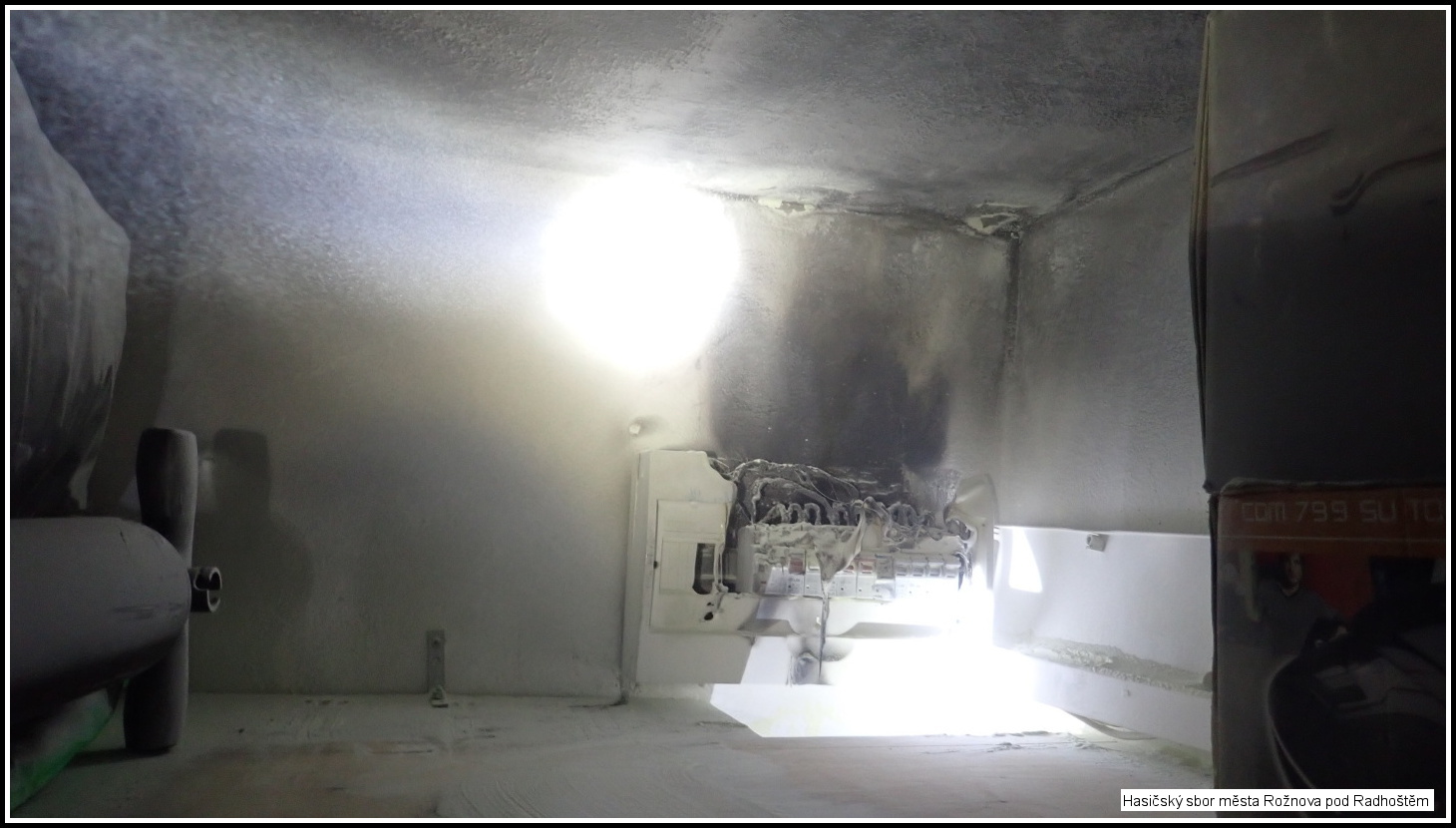 Po příjezdu na místo události byl zjištěn již lokalizovaný požár elektro rozvaděče v bytě panelového domu. Majitelé před příjezdem jednotek provedli lokalizaci požáru pomoci ručního hasicího přístroje. Jednotka překontrolovala vypnutí hlavního jističe pro daný byt a jelikož se el. rozvaděč nacházel ve skříní pod stropem, provedla jednotka vyklizení této skříně a následně pomocí termokamery kontrolu jak samotné pojistkové skříně tak i přilehlého okolí na výskyt možných skrytých ohnisek. Následně byla nahlášena likvidace požáru a místo si převzal vyšetřovatel HZS.